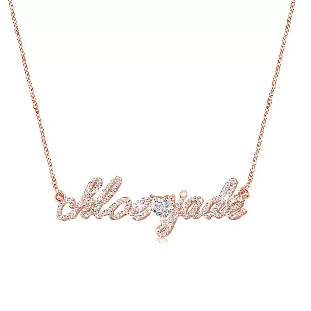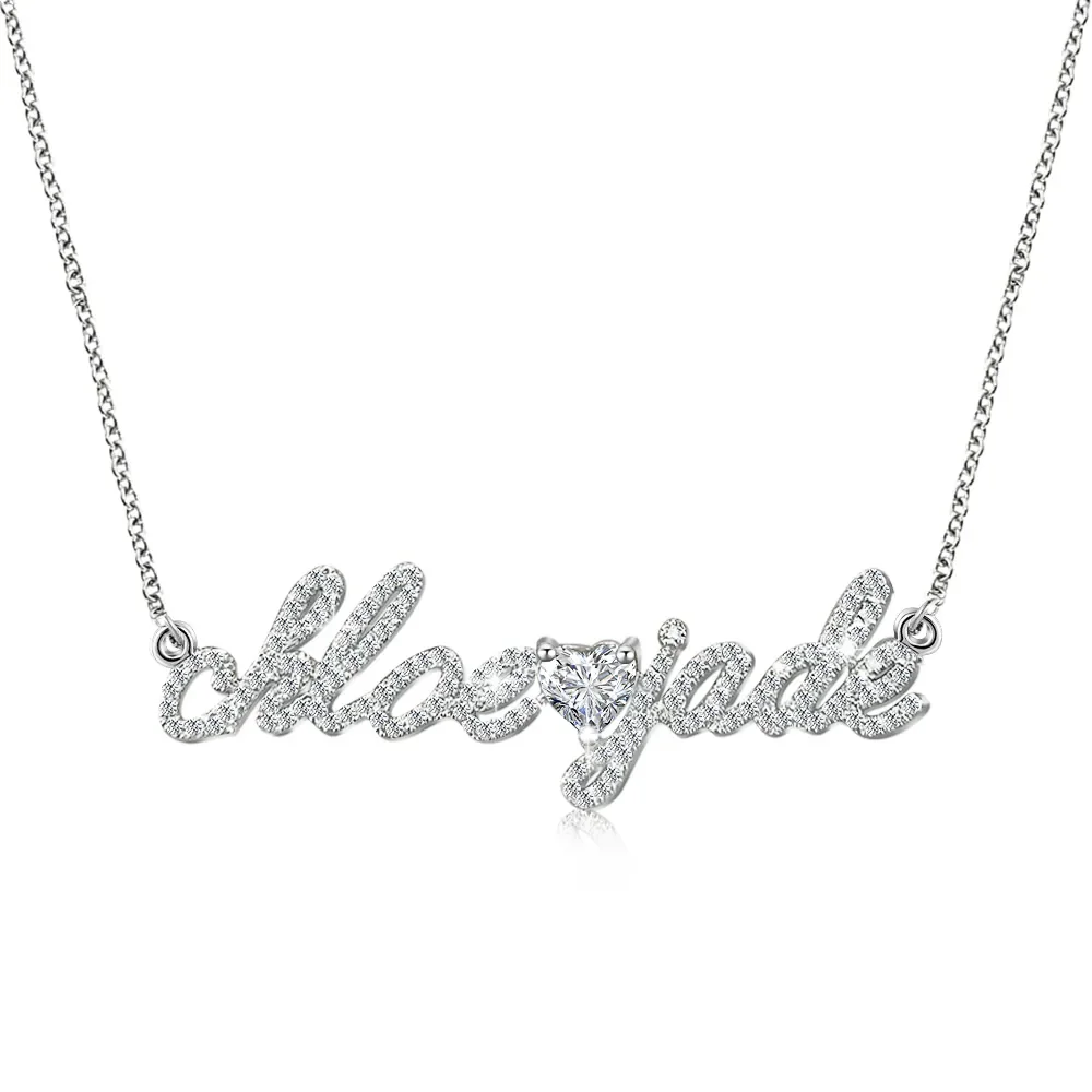 Amour intemporel : collier personnalisé avec nom de cœur incrusté de diamants Qitian