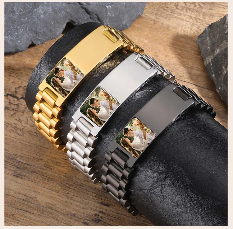 Bracelet en acier inoxydable avec photo personnalisée pour homme, bracelets d'identification, bracelet gravé gratuit