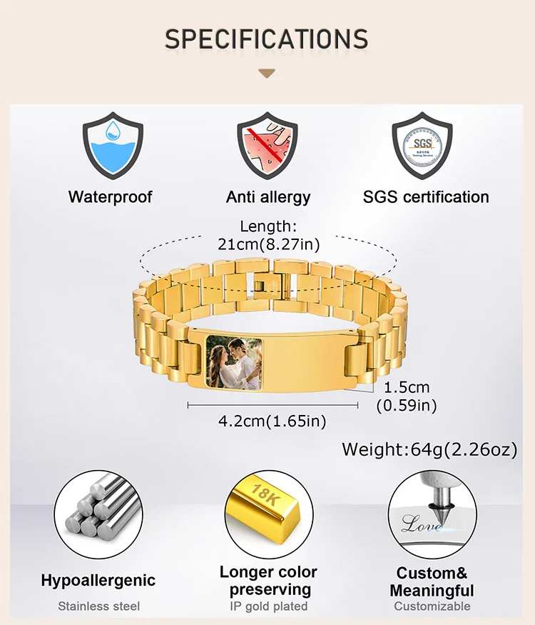 Bracelet personnalisé de Bangle d'identification de photos pour les hommes, ce bracelet d'identification permet graver sur l'étiquette avec n'importe quelle information.