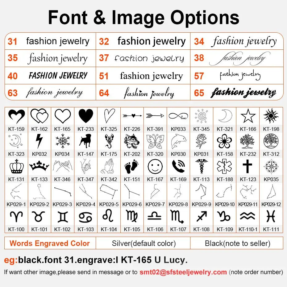 Personnalisation: noms, sentiments, dates, initiales, citations, coordonnées, chiffres, lignes de chansons, rêves, mots avec sens, etc.