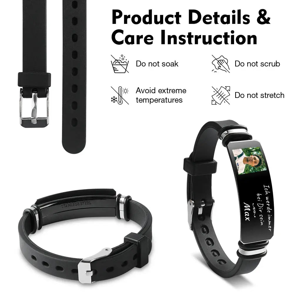 Bracelet photo personnalisé, cadeau commémoratif pour la famille et les amis, bracelet en silicone noir, photo gravée personnalisée
