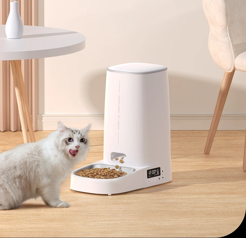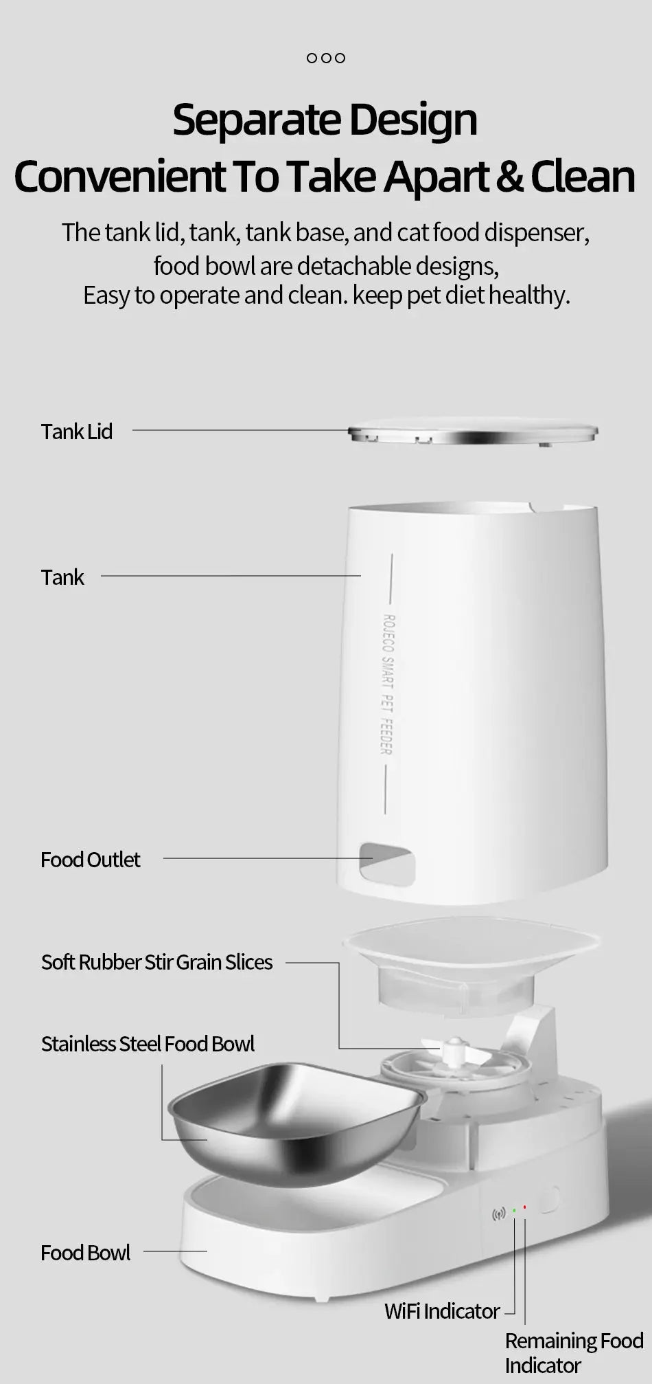 ROJECO-Mangeoire automatique intelligente pour animaux de compagnie, distributeur de nourriture pour chat, distributeur de croquettes, télécommande, bouton WiFi, accessoires pour chats et chiens