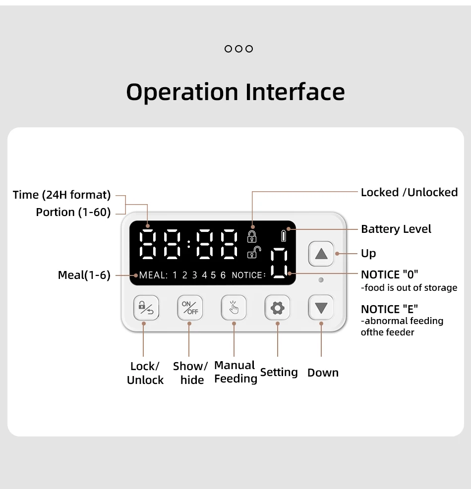 2. s'il vous plaît assurez-vous que la nourriture pour animaux de compagnie est la nourriture sèche, ce produit ne prend en charge que la nourriture sèche utilisée.