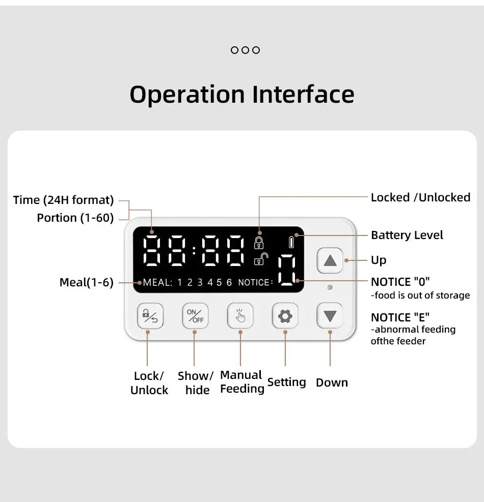 • Télécommande:Avec la fonction de contrôle à distance, vous pouvez facilement gérer le programme d'alimentation de votre chat à distance, en veillant à ce qu'il soit toujours bien nourri.